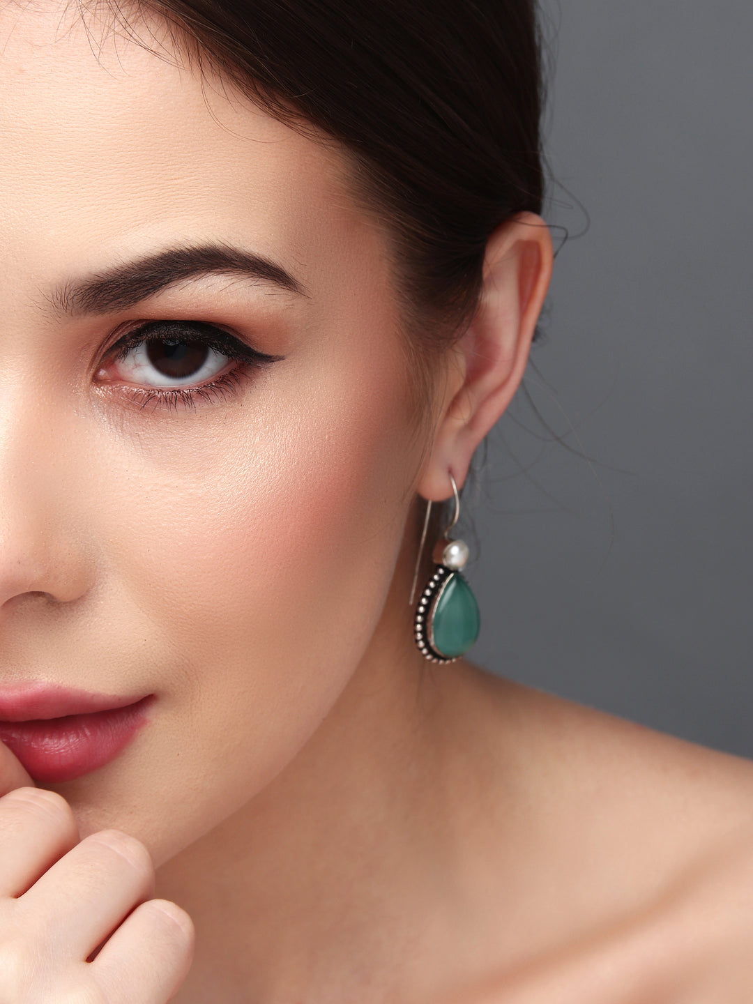 These handcrafted silver oxidized earrings are crafted from premium-quality brass and adorned with a stunning Monalisa stone, exuding elegance and charm. Designed with a convenient fish hook lever, they ensure a secure and comfortable fit, making them a perfect accessory for both traditional and contemporary looks.