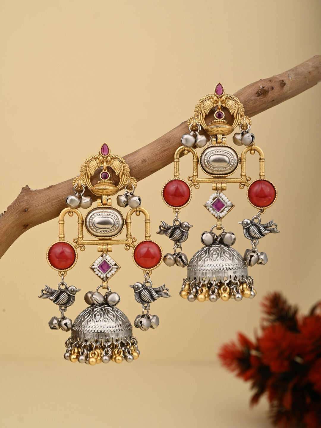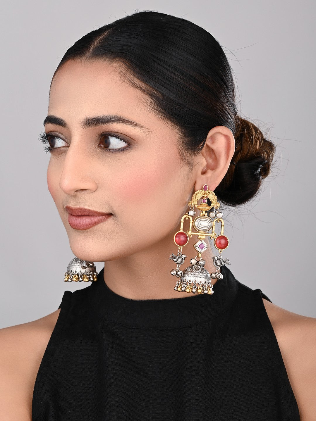 Grace your look with these elegant silver-plated long jhumka earrings, designed to be lightweight for all-day comfort....