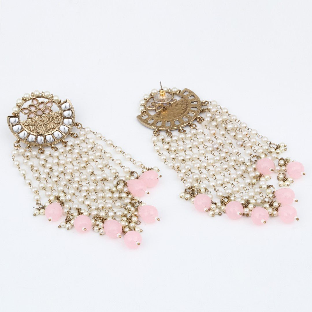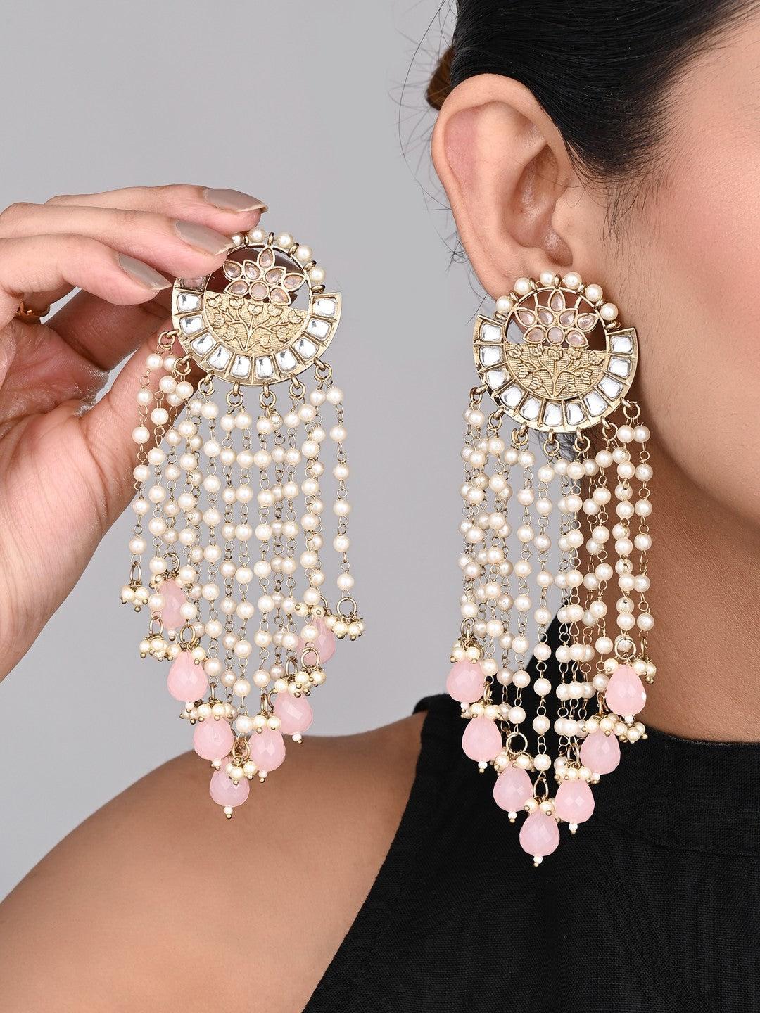 Elegant Pearl & Bead Chandelier Earrings - Pink