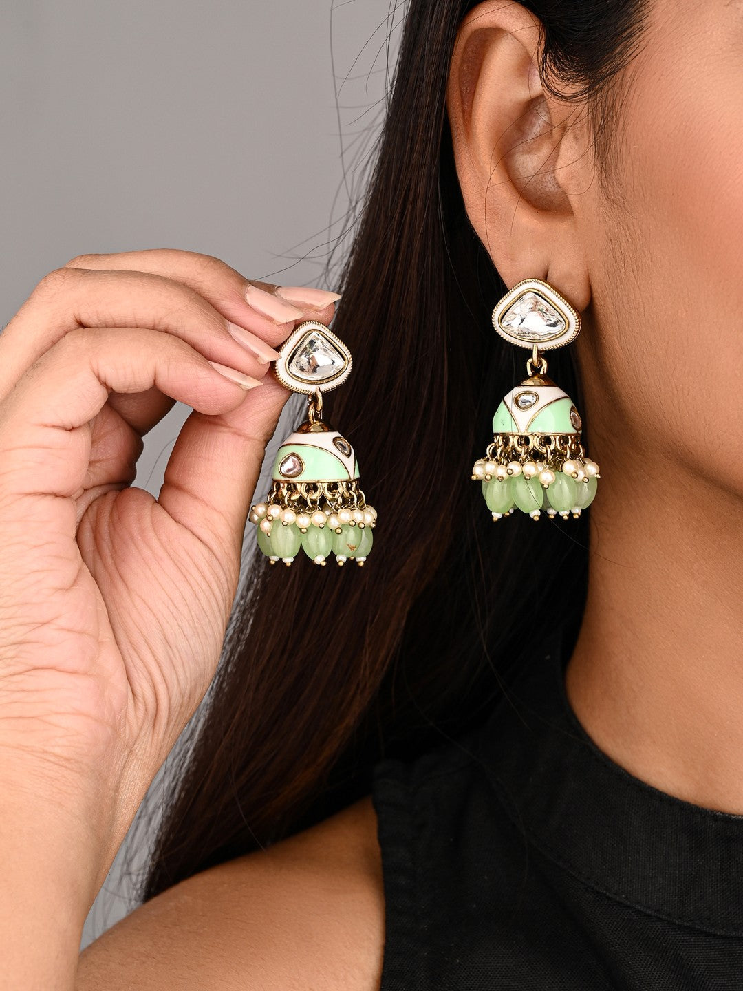 Enamelled Jhumka Earring - Sage green