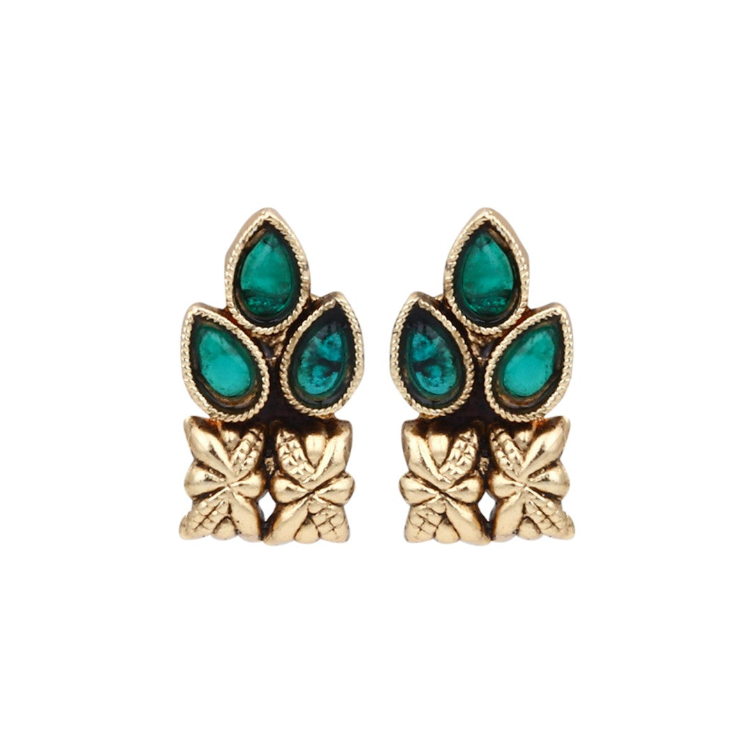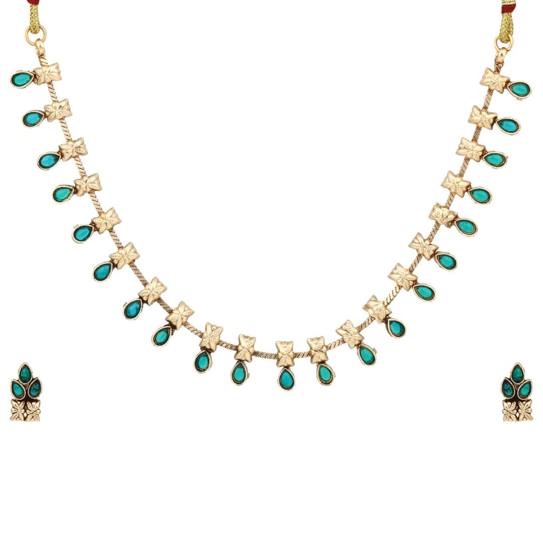 This gold-plated double layered necklace set features intricate craftsmanship, elegantly adorned with delicate red stones that add...