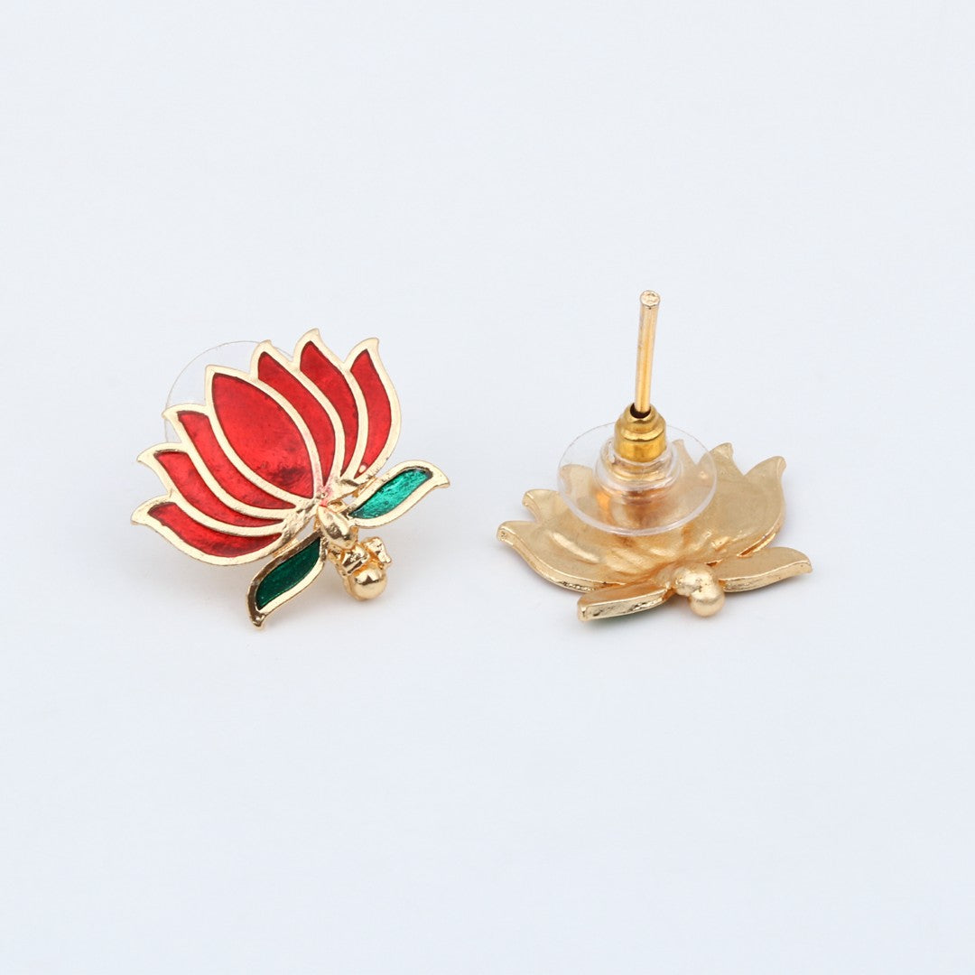This gold-plated double layered necklace set features intricate craftsmanship, elegantly adorned with delicate red stones that add a rich pop of color and sophistication. The necklace is made from a sturdy metal alloy and comes with an adjustable dori, allowing for a customizable fit and comfortable wear for various neck sizes. Paired with matching stud earrings, each with a secure post and back closure, this set is perfect for festive occasions, weddings, or elevating everyday style with a refined, luxurious touch.