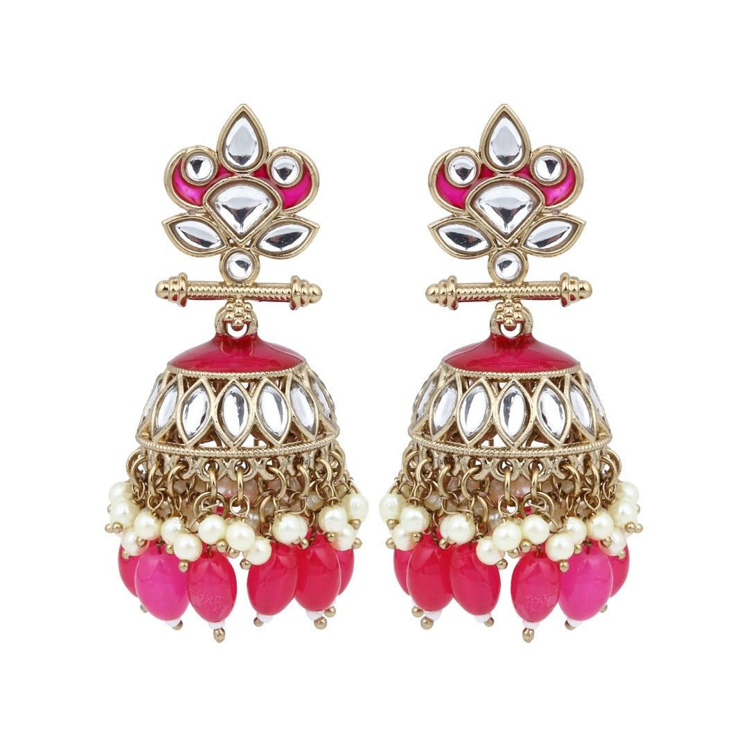 Gold plated Kundan & Meenakari Jhumka Earrings - Pink