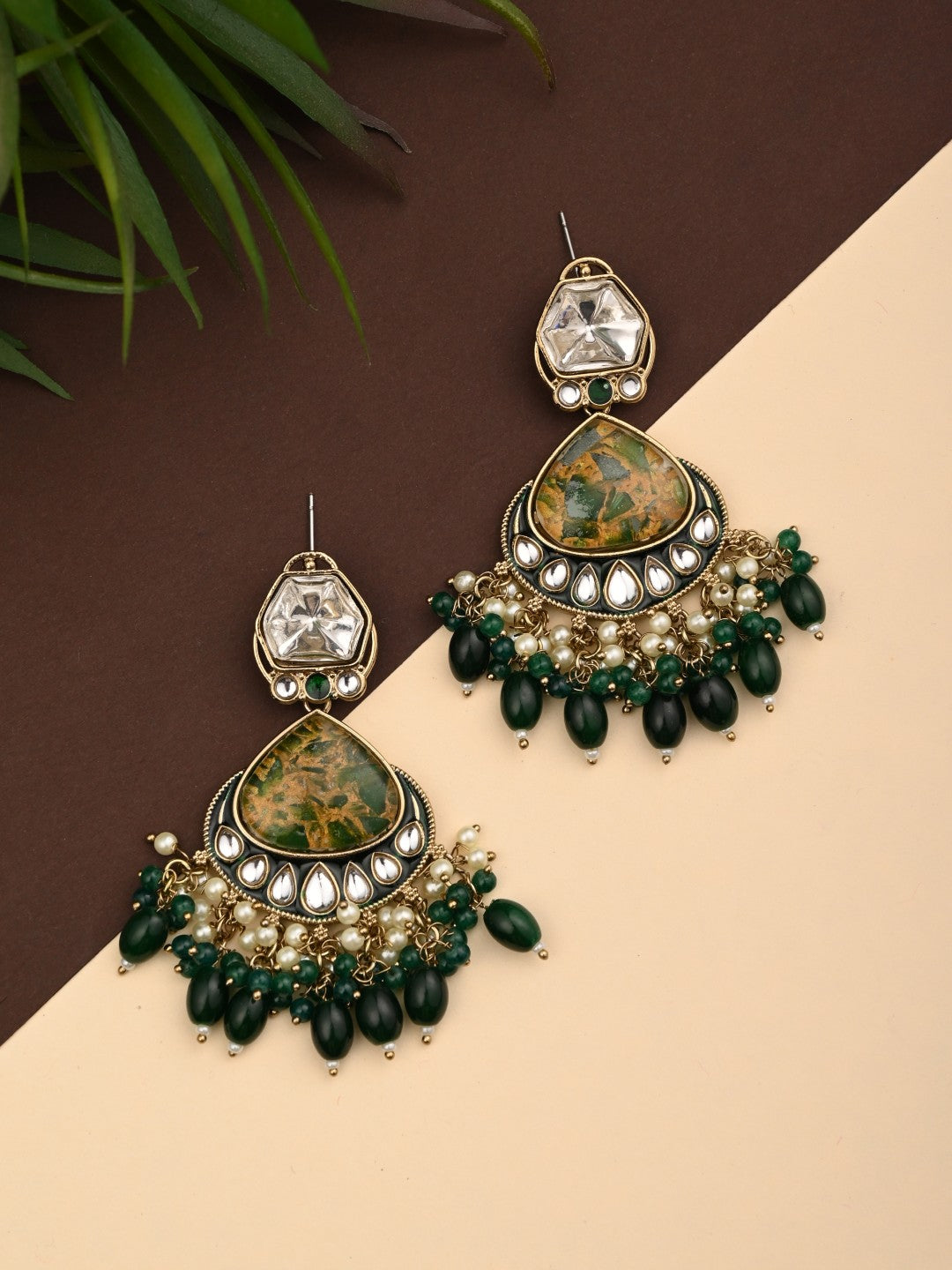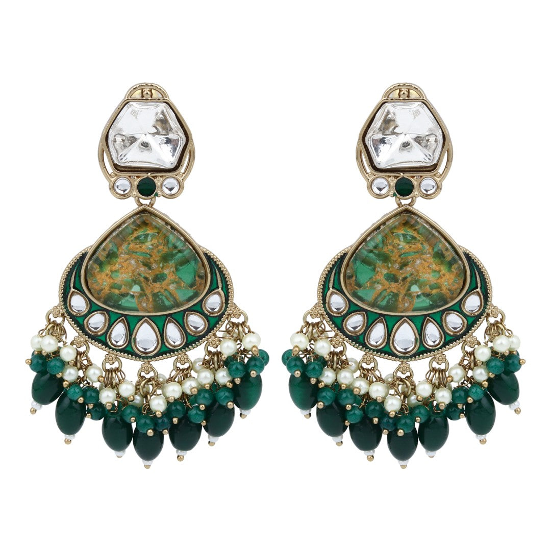 Elevate your ensemble with these exquisite gold-plated drop earrings, thoughtfully crafted from durable zinc alloy. Featuring a...