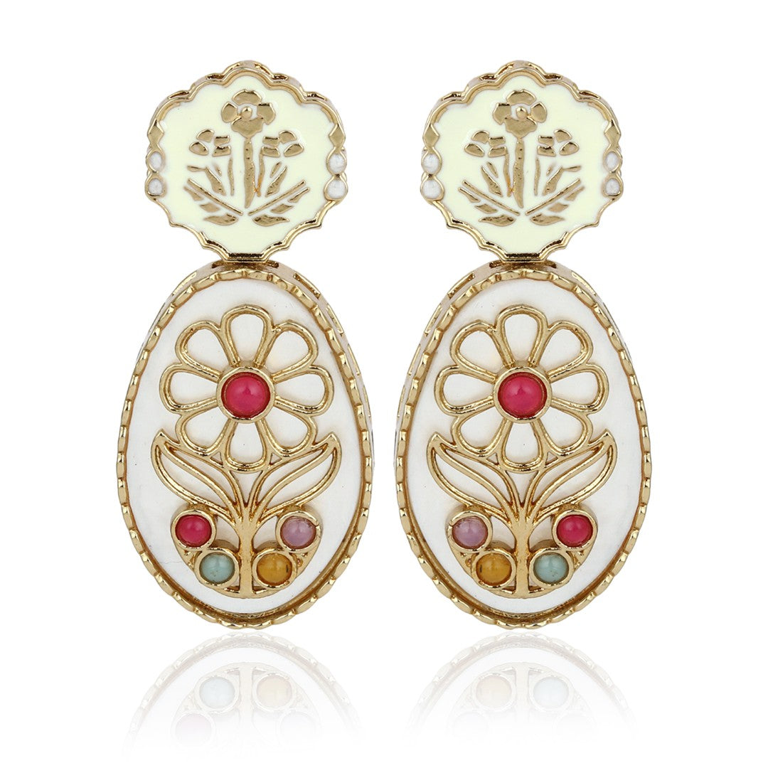 MOP Meenakari Floral Drop Earrings - Multi