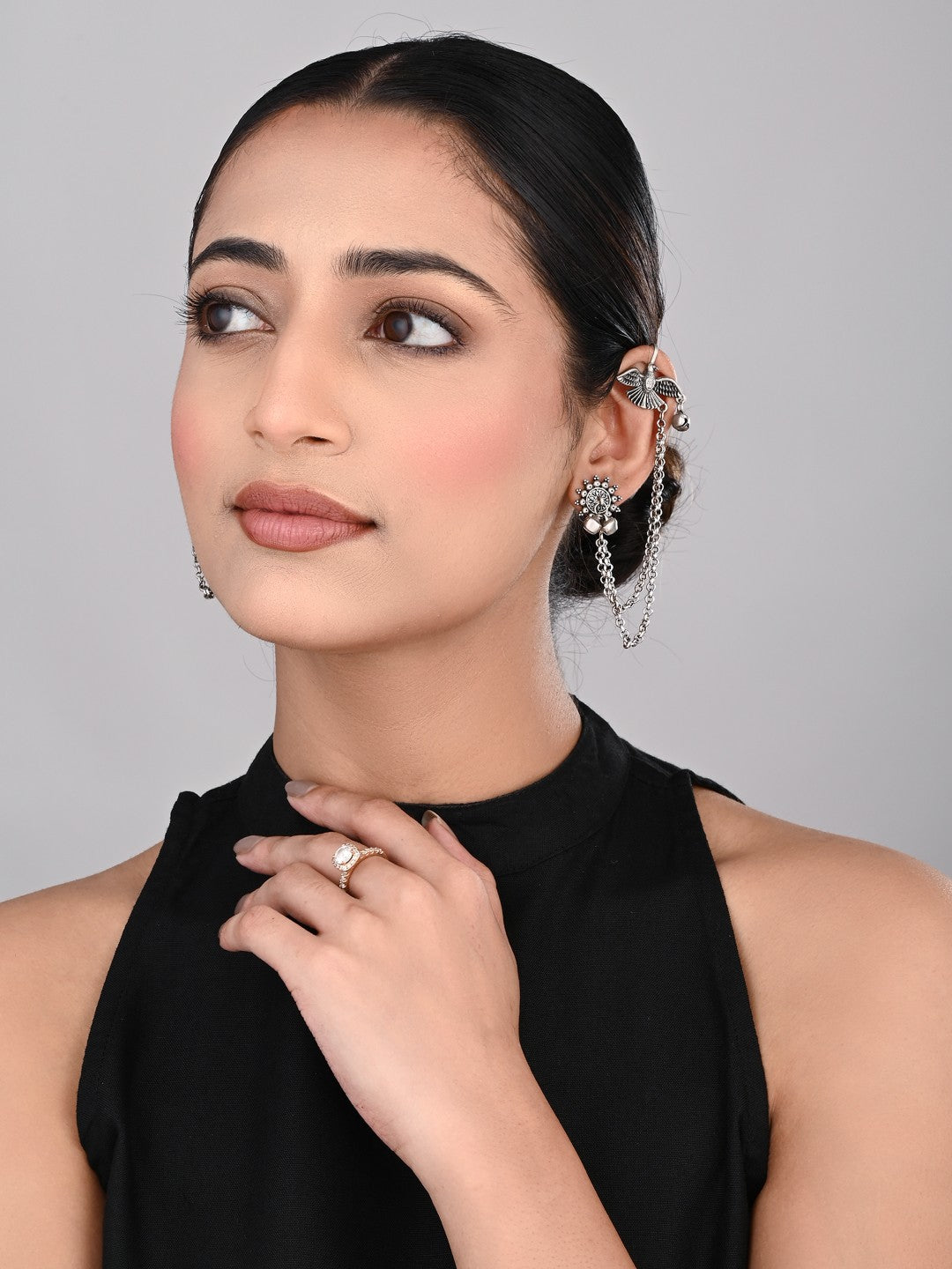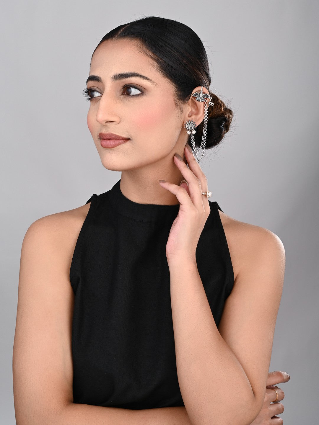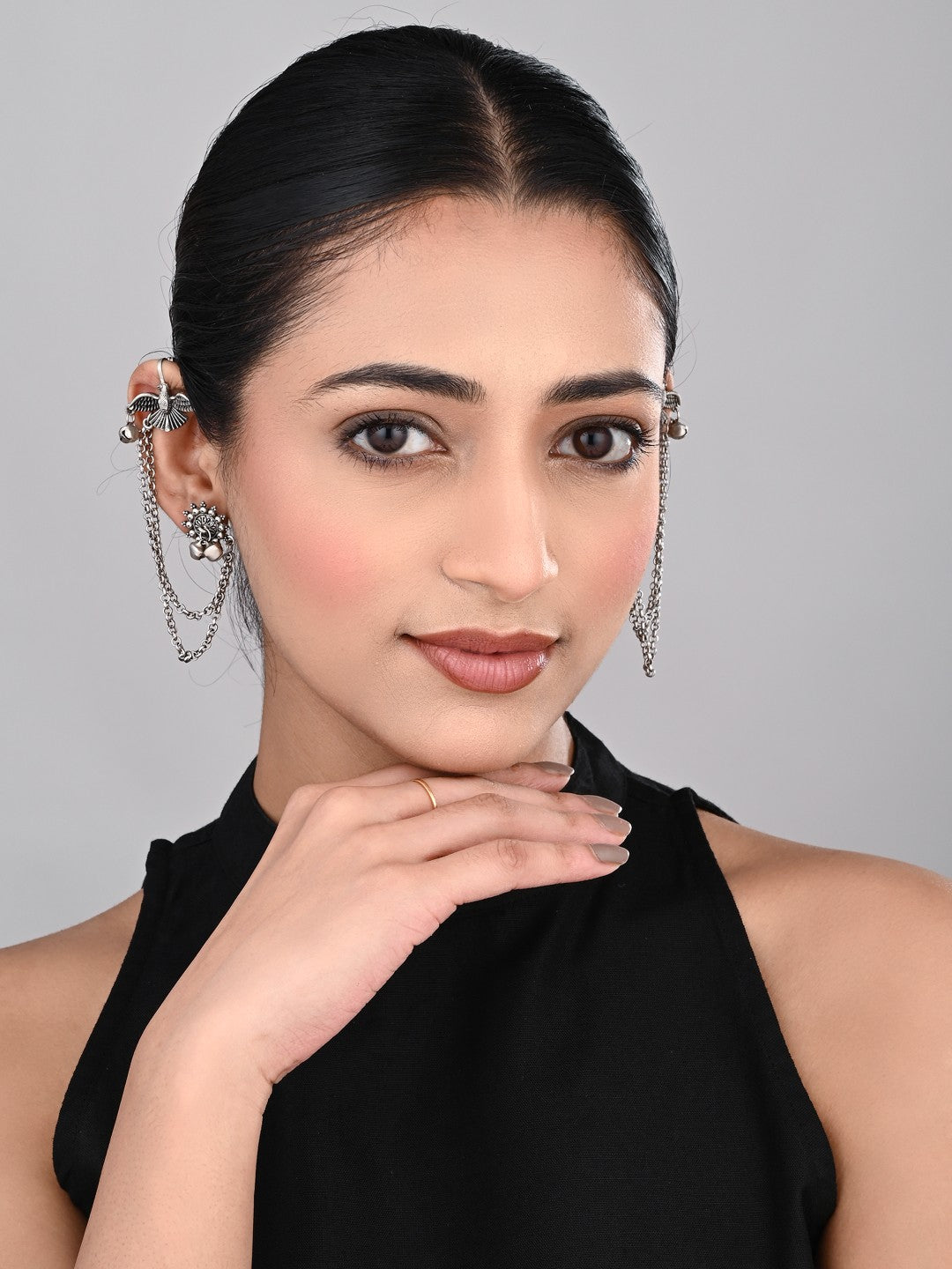 Make a fashion-forward statement with this oxidised silver ear cuff, designed to add shimmer and edge to...
