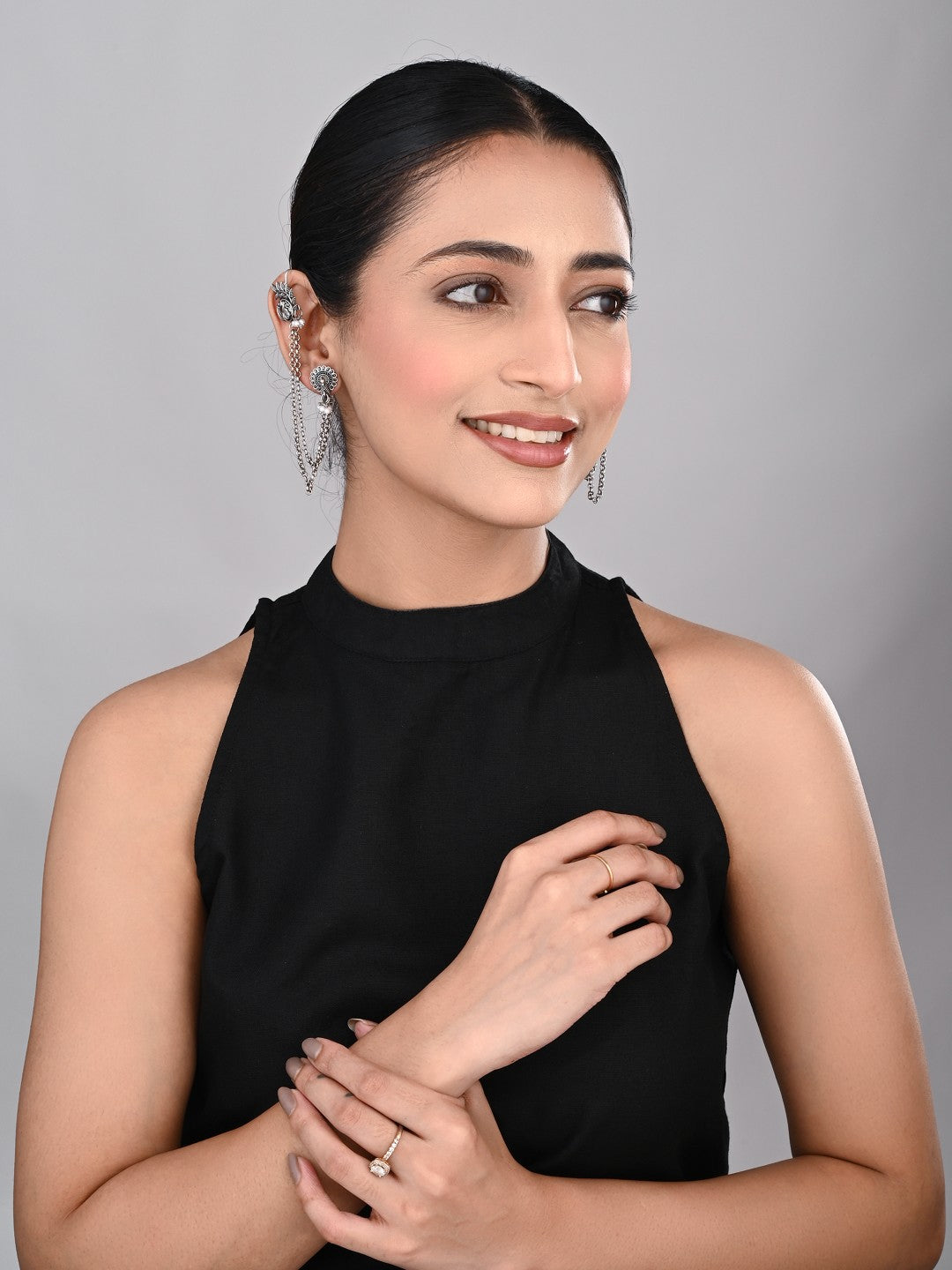 Make a fashion-forward statement with this oxidised silver ear cuff, designed to add shimmer and edge to...
