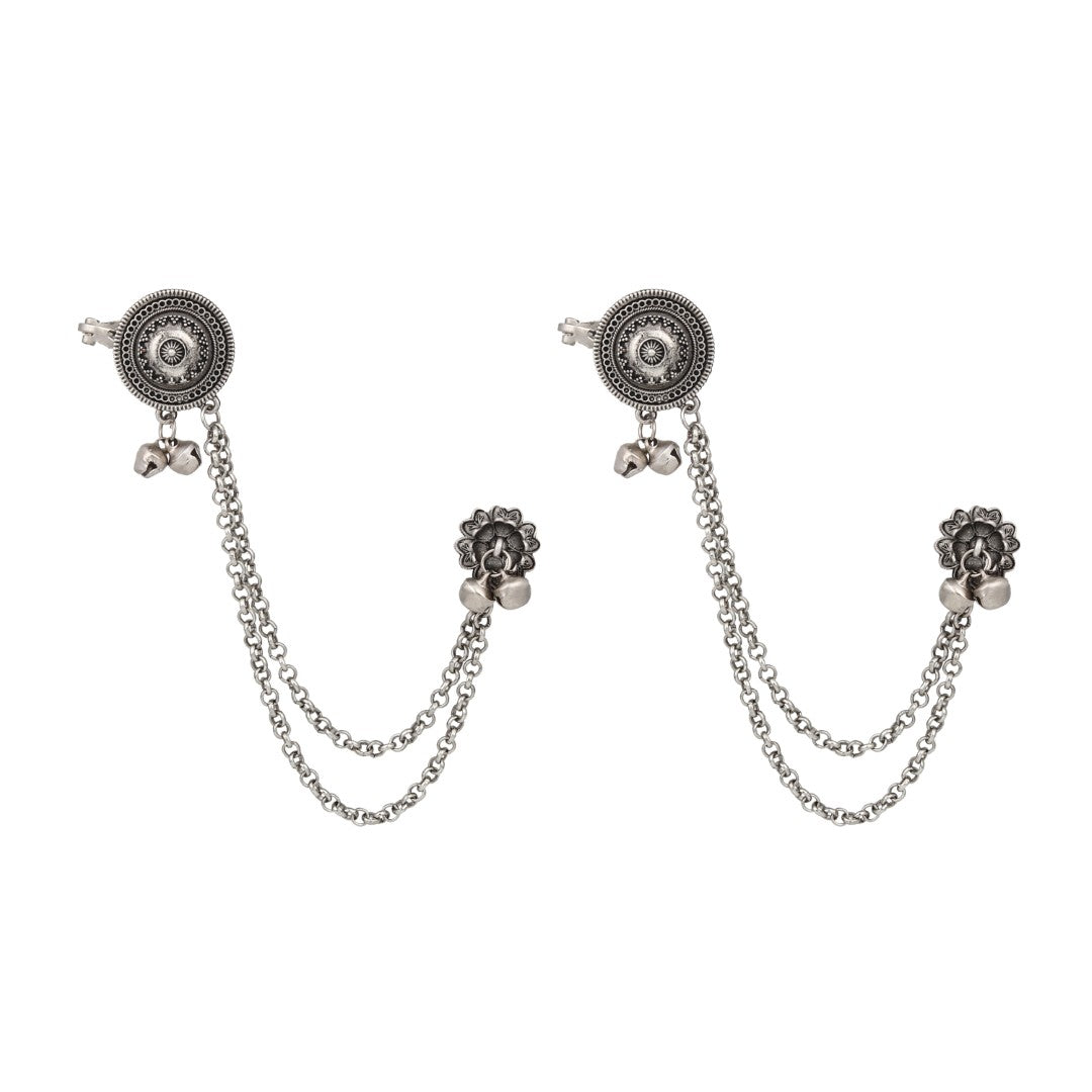 Make a fashion-forward statement with this oxidised silver ear cuff, designed to add shimmer and edge to any contemporary outfit. Effortlessly non-pierced, this ear wrap combines intricate traditional elements with a modern twist, making it a bold accessory for parties, concerts, or everyday chic looks. Lightweight, comfortable, and easy to style, it pairs perfectly with both ethnic and western ensembles for an instant touch of glamour.