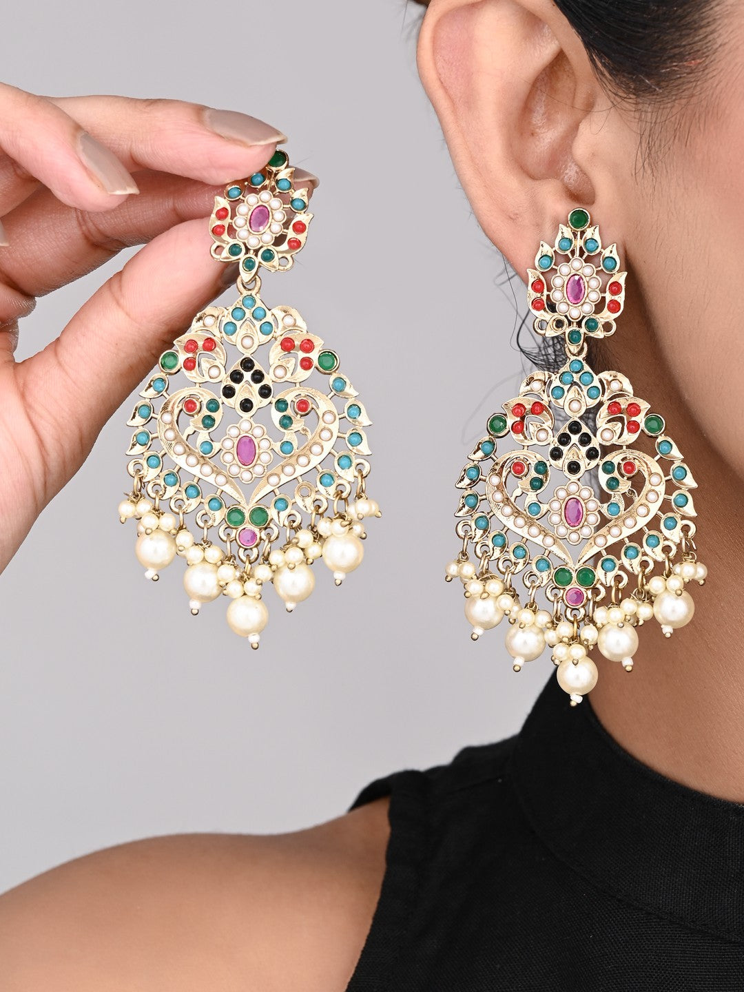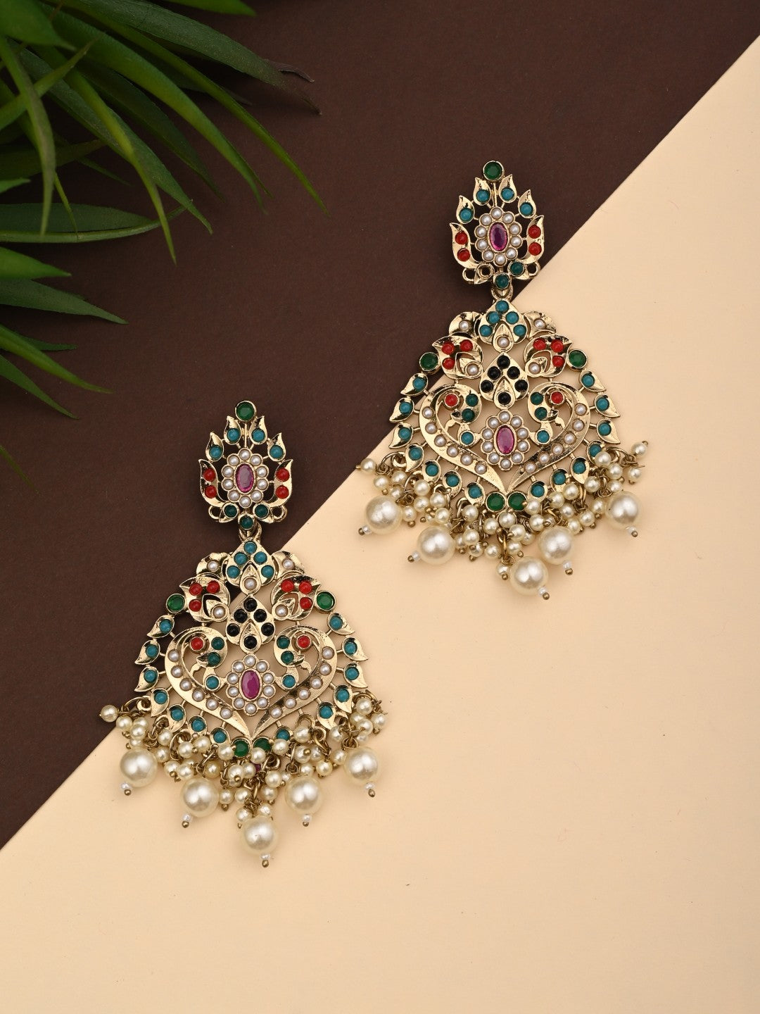 Discover the elegance of tradition with our Gold-Plated Chandbali Earrings—crafted in premium metal alloy and adorned with...