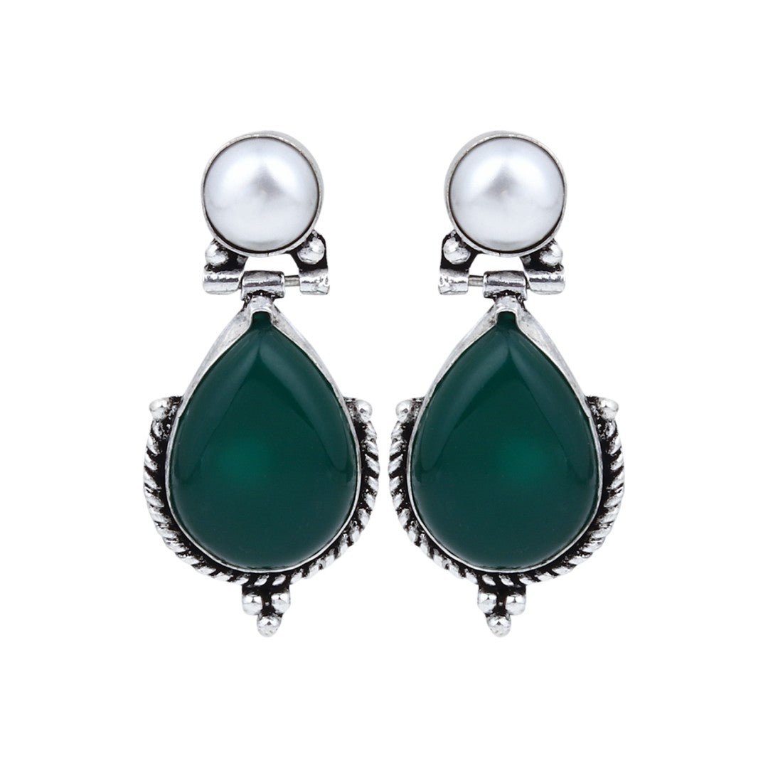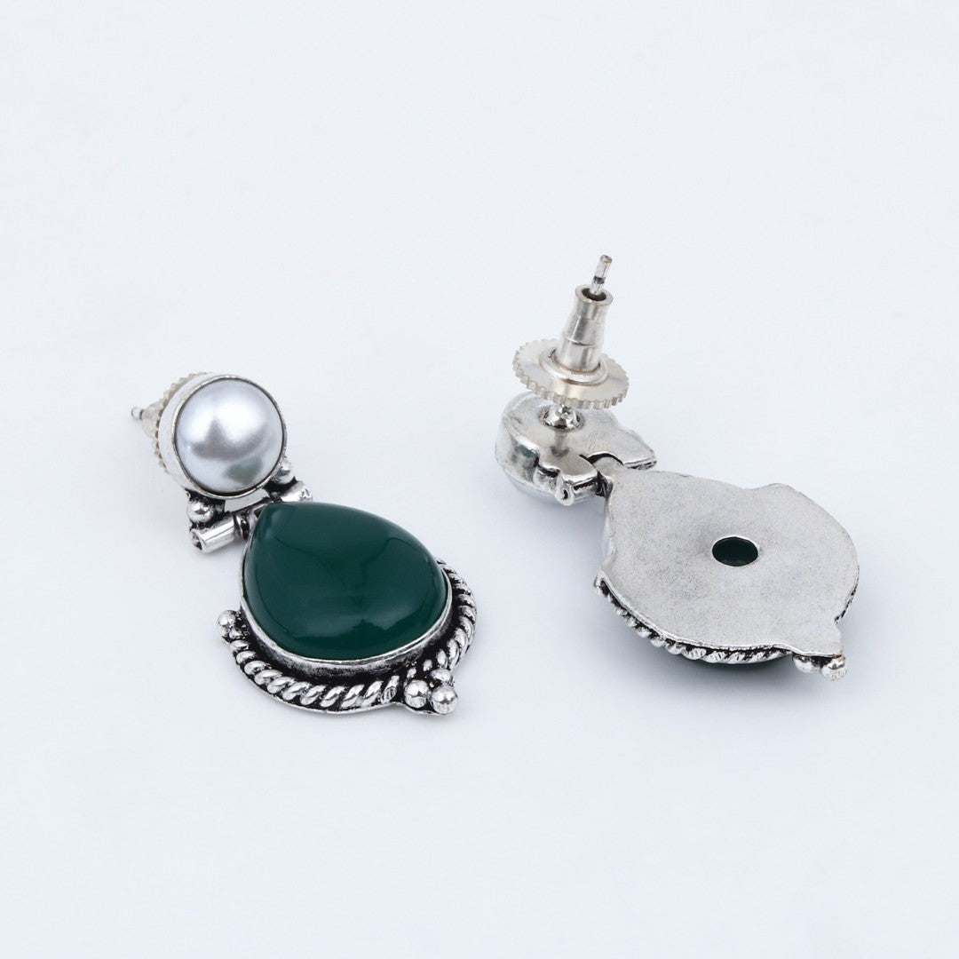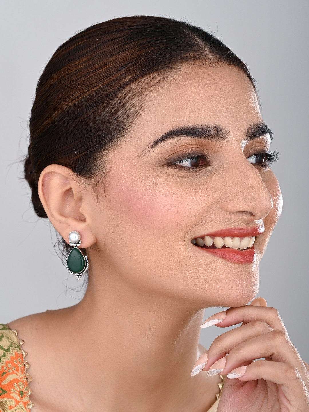 These silver oxidized drop earrings feature a unique, antique-inspired patina that highlights intricate craftsmanship and timeless style....