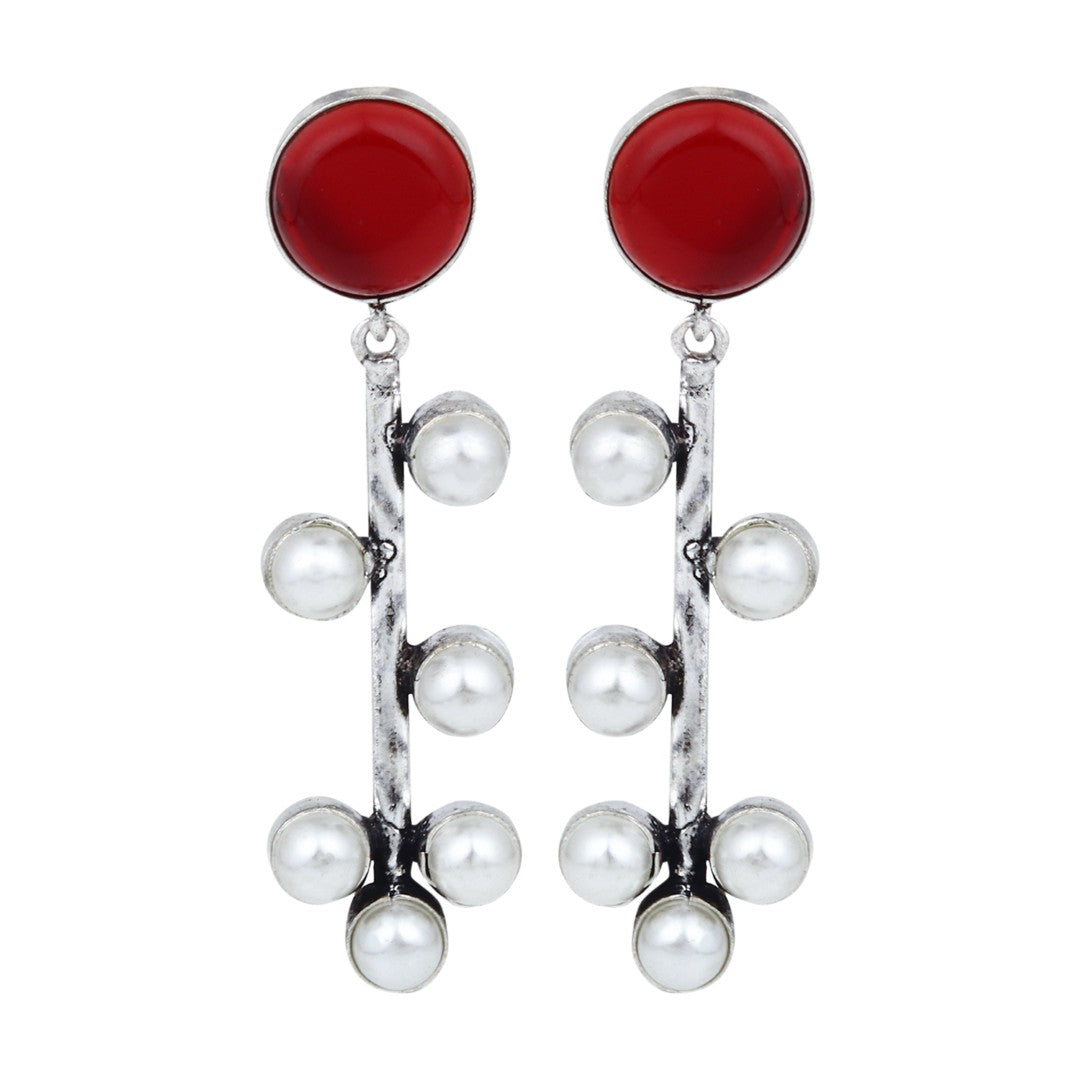 Red Stone & pearl drop Earring