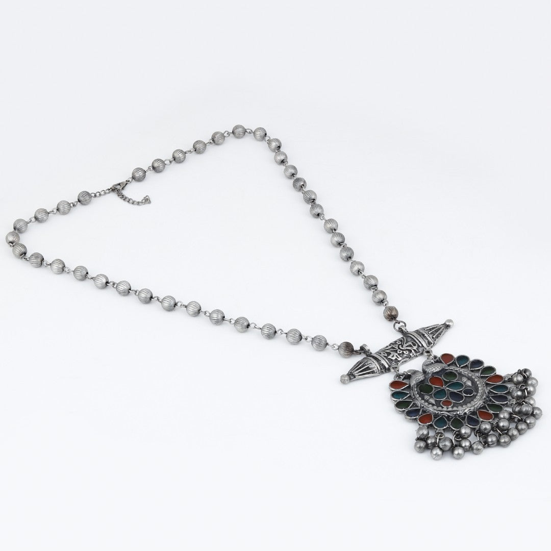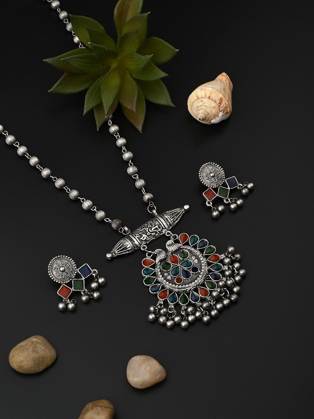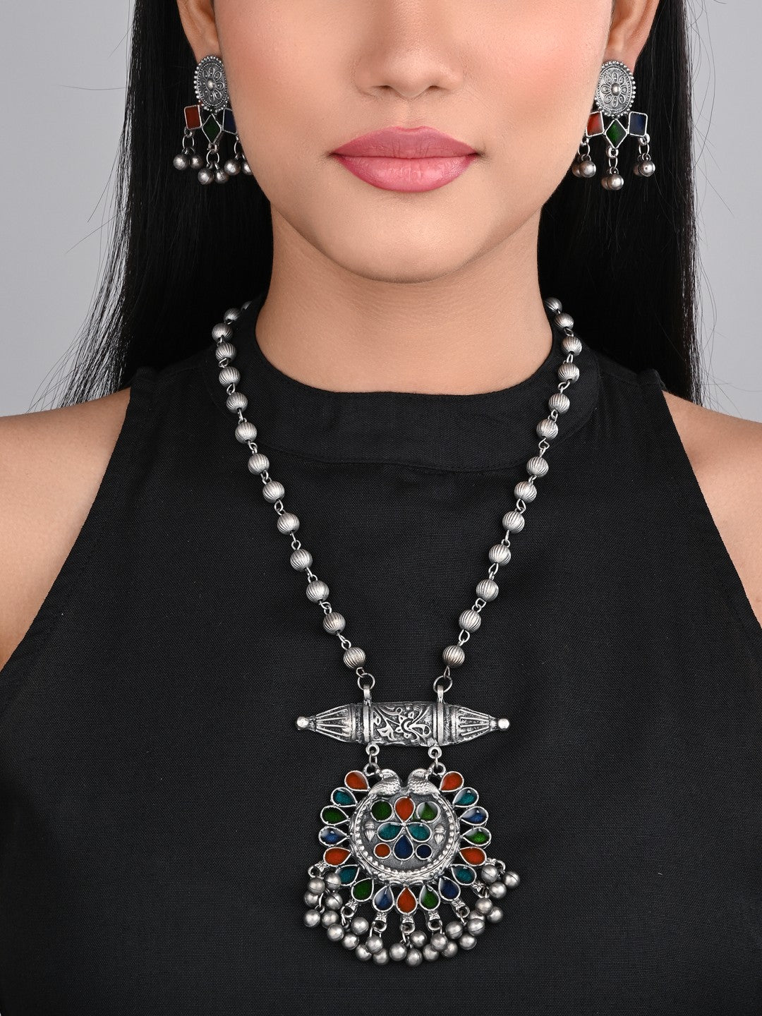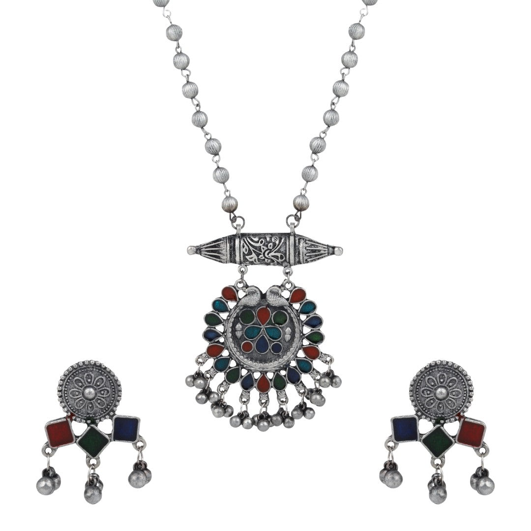 Silver Oxidised Finish Meenakari Jewellery Set for Navratri