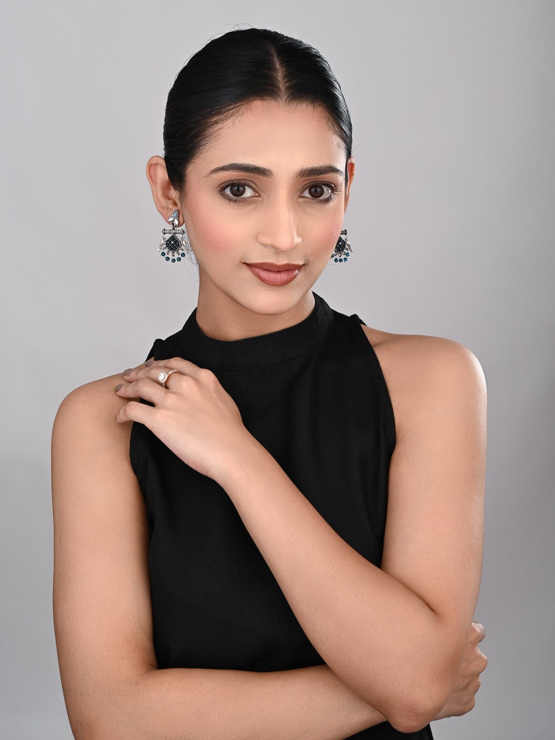 Add a touch of rustic charm to your look with these silver-plated bird drop earrings, featuring an...
