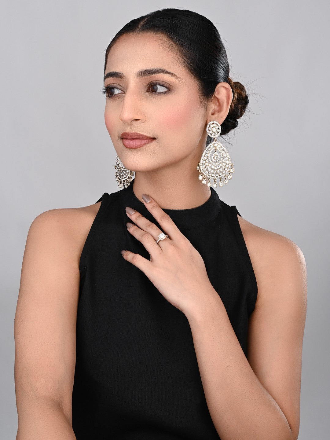 Gold plated kundan chandbali Earring