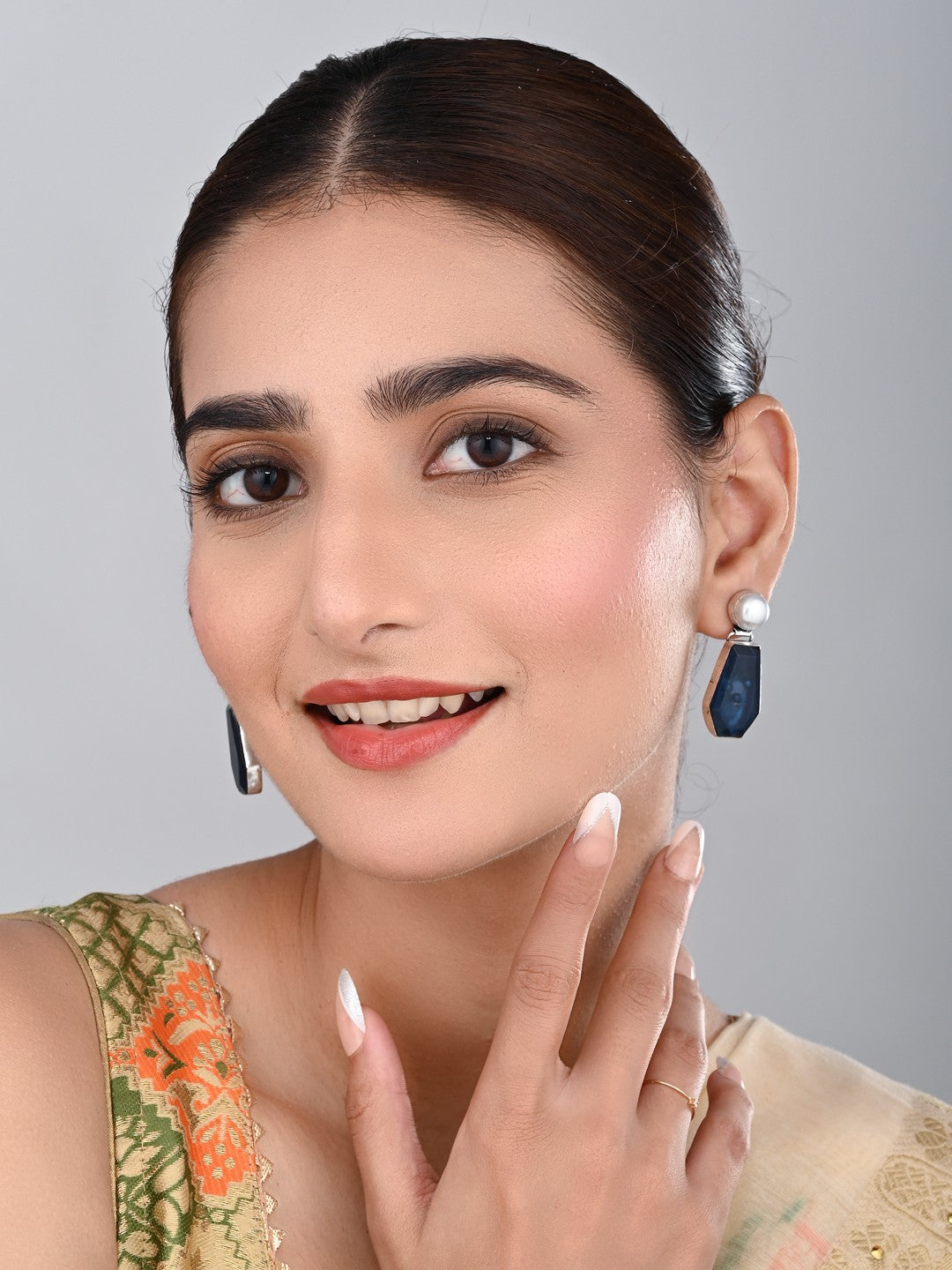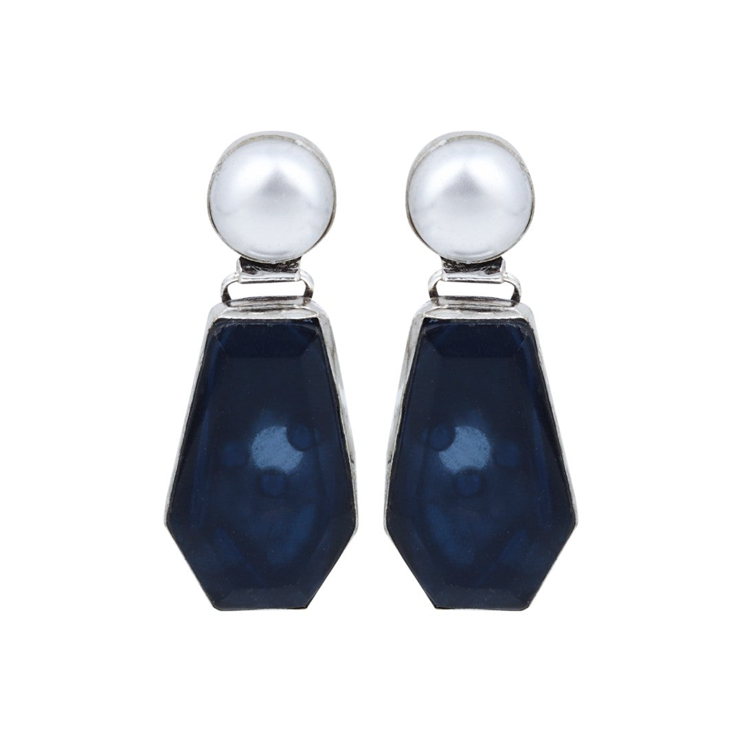 Women Silver-Plated Contemporary Drop Earrings - Navy
