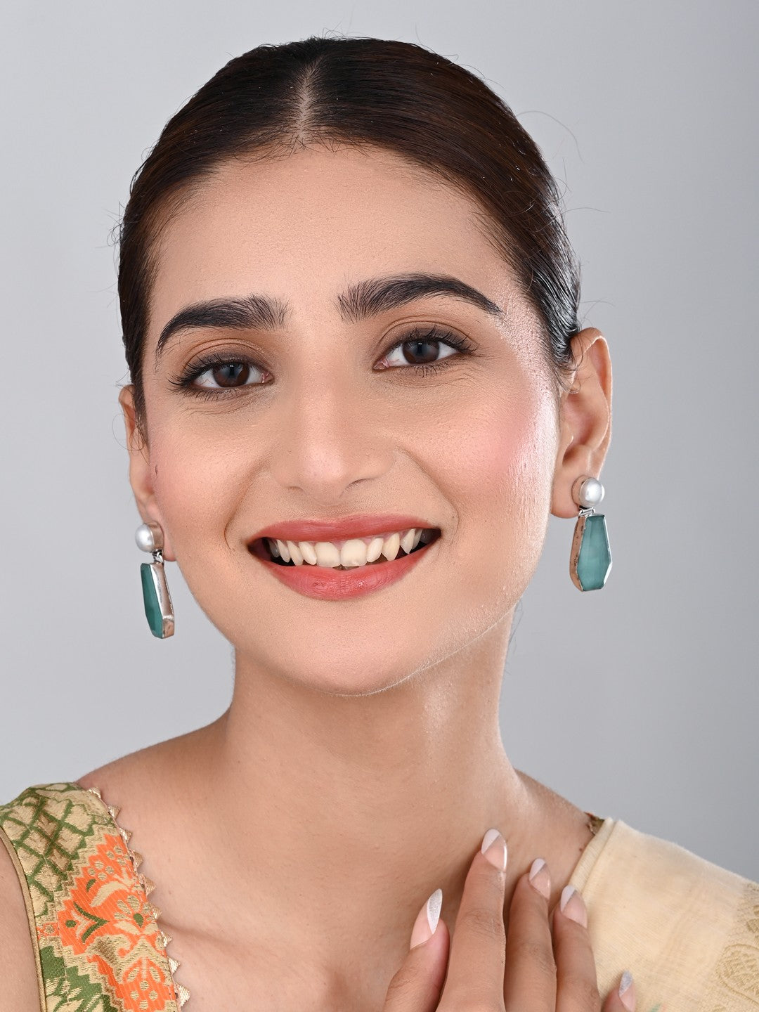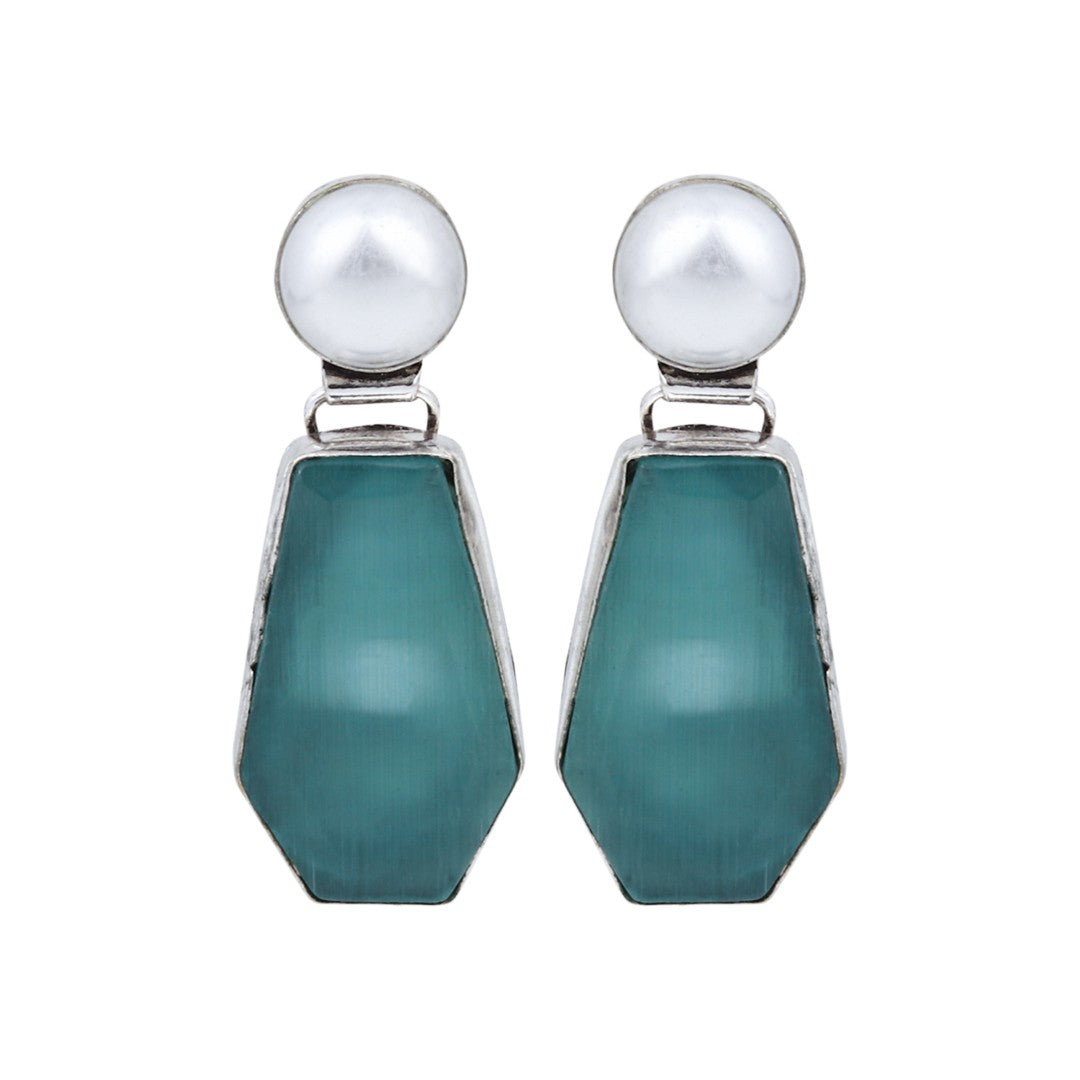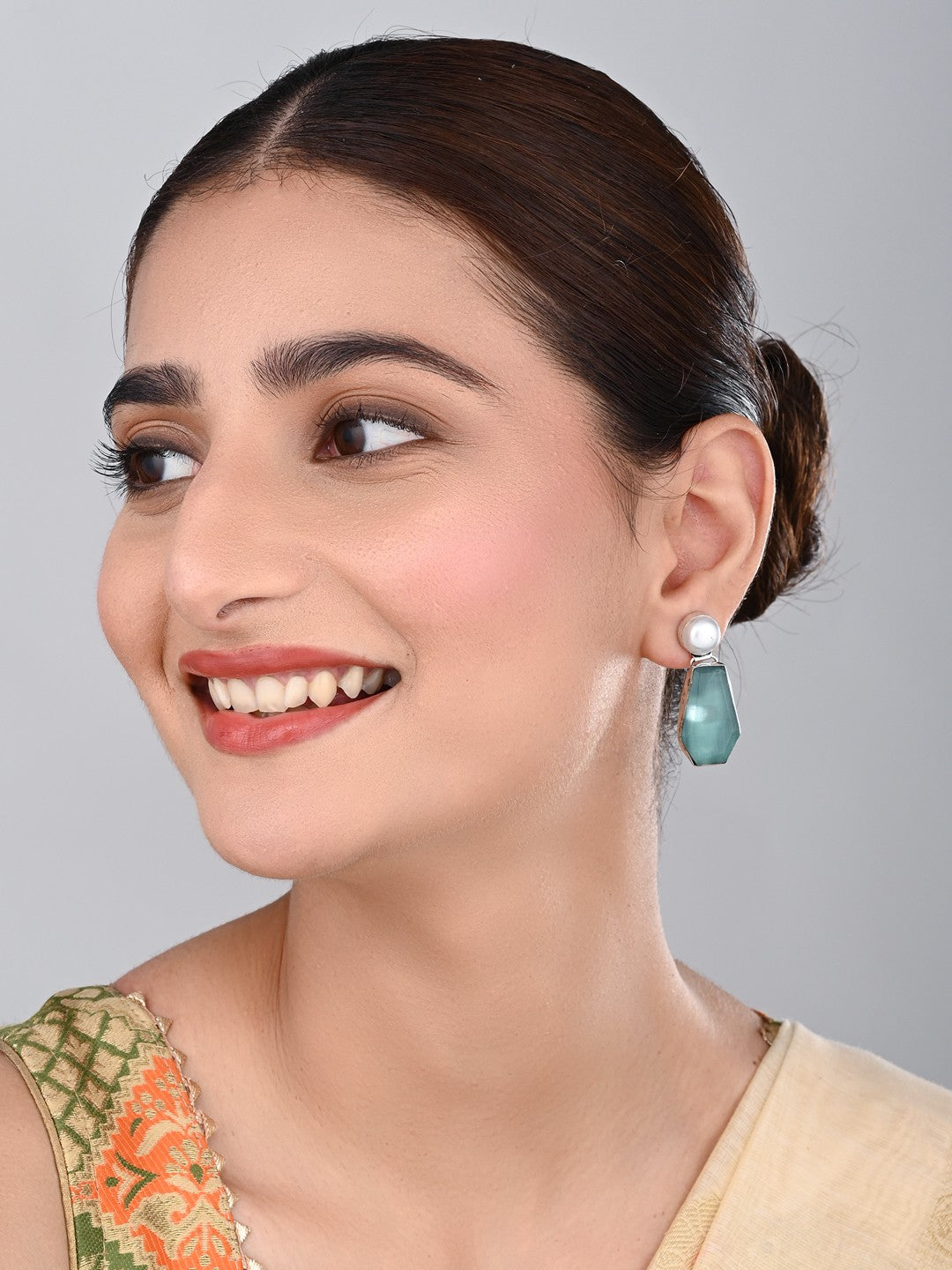 Women Silver-Plated Contemporary Drop Earrings - Blue